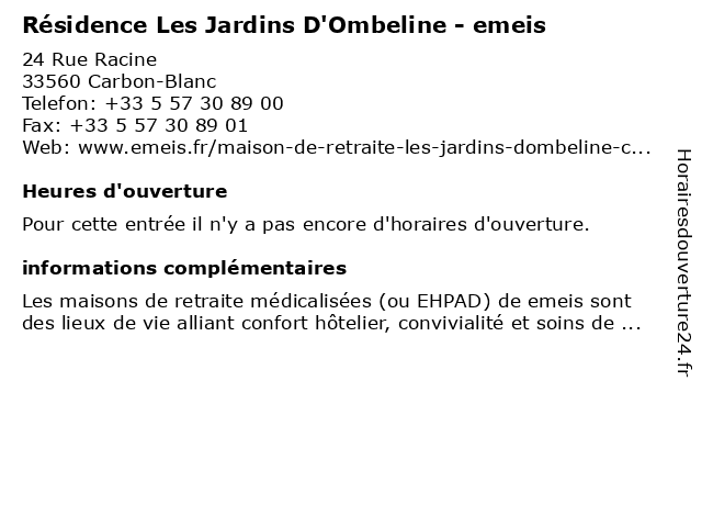 | Appeler Résidence Les Jardins D'Ombeline - emeis | |