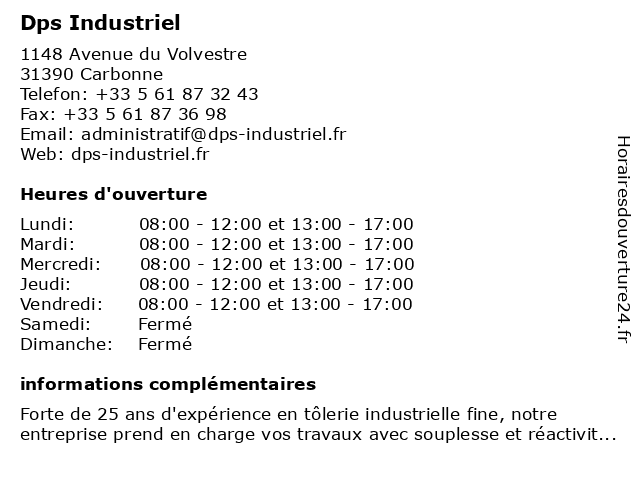 | Lundi | 08:00-12:00 et 13:00-17:00 |