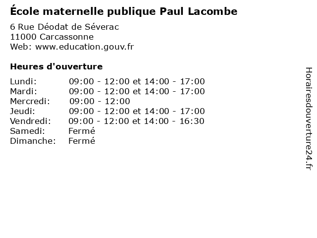 | Lundi | 09:00-12:00 et 14:00-17:00 |