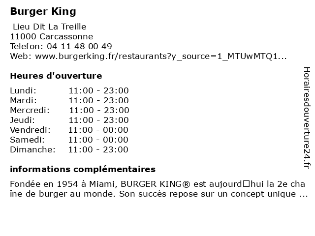| Samedi | 11:00-00:00 |