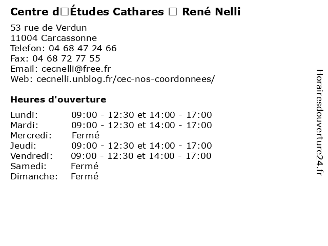 | Lundi | 09:00-12:30 et 14:00-17:00 |