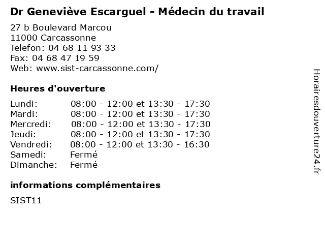| Lundi | 08:00-12:00 et 13:30-17:30 |