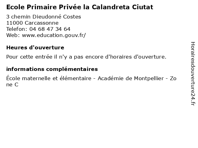 | Appeler Ecole Primaire Privée la Calandreta Ciutat | |