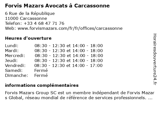 Termes de recherche pour Forvis Mazars Avocats à Carcassonne:carcassonne, avocats, mazars, forvis |