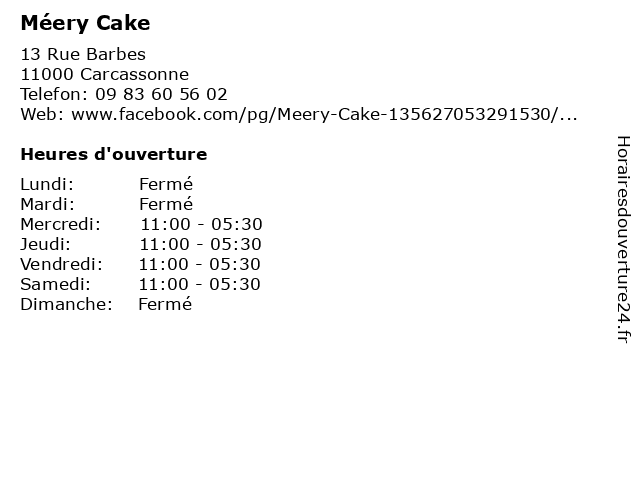 | Mercredi | 11:00-05:30 |