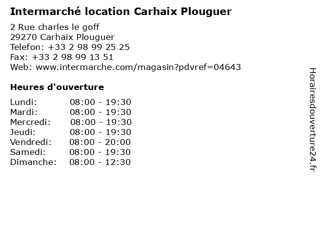 1 Intermarché SUPER Carhaix Plouguer (Distance: 0,00 km) 2 Rue charles le goff, 29270 Carhaix Plouguer carhaix, intermarché, plouguer, super 2 Intermarché station-service Carhaix Plouguer (Distance: 0,02 km) 2 Rue Charles le Goff, 29270 Carhaix-Plouguer carhaix, intermarché, plouguer, service, station 3 E.Leclerc Location (Distance: 0,99 km) - route de Callac, 29270 Carhaix Plouguer automobile, e.leclerc, fourgon, leclerc, location, véhicule 4 CarGo Location de Véhicules KERGLOFF (Distance: 2,89 km) Loch ar Lann, 29270 Kergloff cargo, de, kergloff, location, véhicules 5 Clovis Location (Distance: 3,17 km) - ZAC de la Villeneuve, 29270 Carhaix-Plouger camion, clovis, location, poids-lourd, véhicules 6 E.Leclerc Location (Distance: 15,10 km) - route de Quimper, 56110 Gourin automobile, e.leclerc, fourgon, leclerc, location, véhicule |