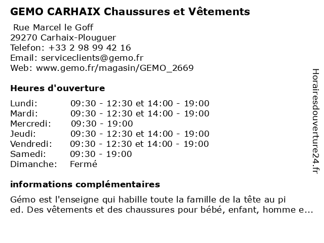 | Mardi | 09:30-12:30 et 14:00-19:00 |