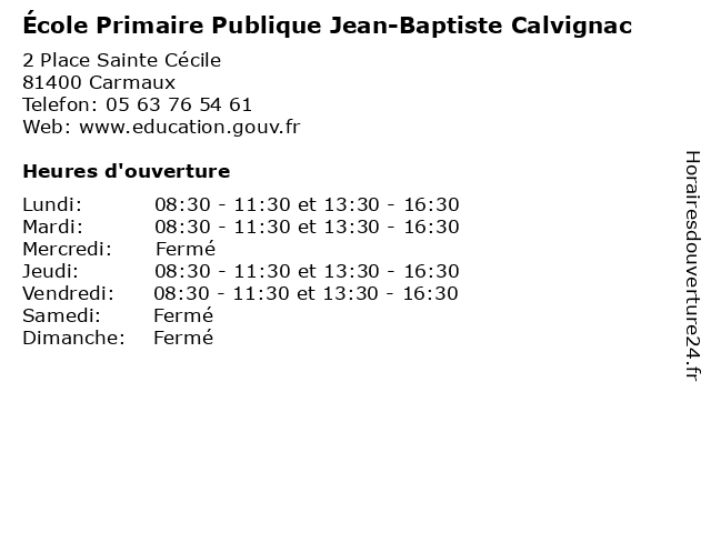| Mardi | 08:30-11:30 et 13:30-16:30 |