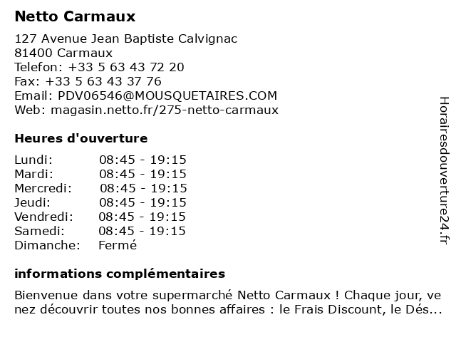 Termes de recherche pour Netto Carmaux:carmaux, netto |