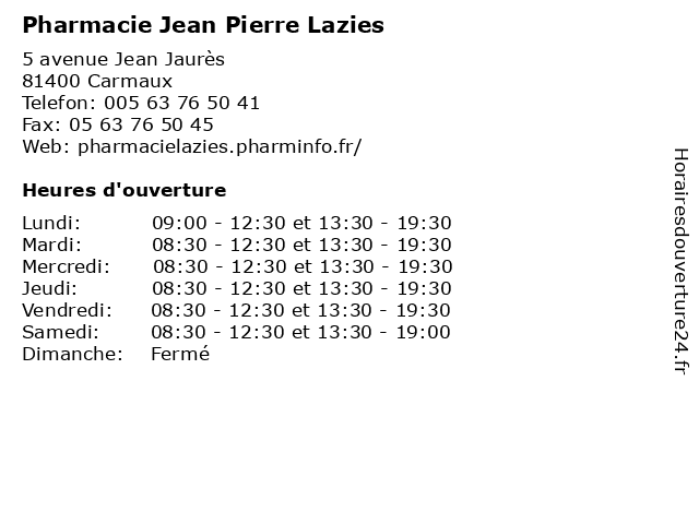 | Mardi | 08:30-12:30 et 13:30-19:30 |