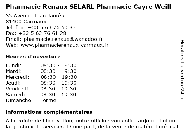 Termes de recherche pour Pharmacie Renaux SELARL Pharmacie Cayre Weill:pharmacie, weill, cayré, selarl, rénaux |