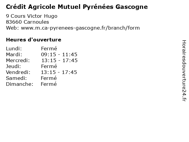 1 Crédit Agricole Mutuel Pyrénées Gascogne (Distance: 3,09 km) . Grande Rue, 83790 Pignans agricole, assurances, bancaire, banque, crédit, gascogne, mutuel, pyrénées, services 2 Crédit Agricole Mutuel Pyrénées Gascogne (Distance: 7,79 km) 26 Avenue General De Gaulle, 83340 Flassans agricole, assurances, bancaire, banque, crédit, gascogne, mutuel, pyrénées, services 3 Crédit Agricole Mutuel Pyrénées Gascogne (Distance: 12,09 km) . Boulevard Lazare Carnot, 83610 Collobrières agricole, assurances, bancaire, banque, crédit, gascogne, mutuel, pyrénées, services 4 Crédit Agricole Mutuel Pyrénées Gascogne (Distance: 15,82 km) . Saint Jean, 83170 Brignoles agricole, assurances, bancaire, banque, crédit, gascogne, mutuel, pyrénées, services 5 Crédit Agricole Mutuel Pyrénées Gascogne (Distance: 17,86 km) . Rue Gambetta, 83143 Le Val agricole, assurances, bancaire, banque, crédit, gascogne, mutuel, pyrénées, services 6 Crédit Agricole Mutuel Pyrénées Gascogne (Distance: 18,78 km) 7 Avenue Du General De Gaulle, 83400 Hyeres agricole, assurances, bancaire, banque, crédit, gascogne, mutuel, pyrénées, services |