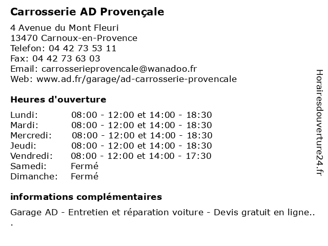| Lundi | 08:00-12:00 et 14:00-18:30 |