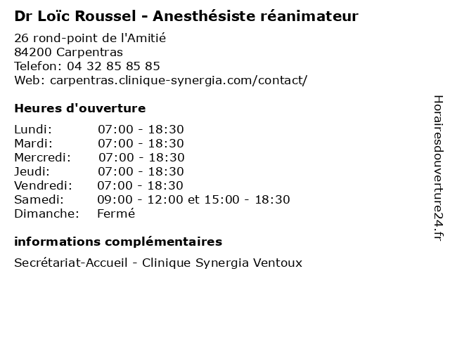 | Samedi | 09:00-12:00 et 15:00-18:30 |