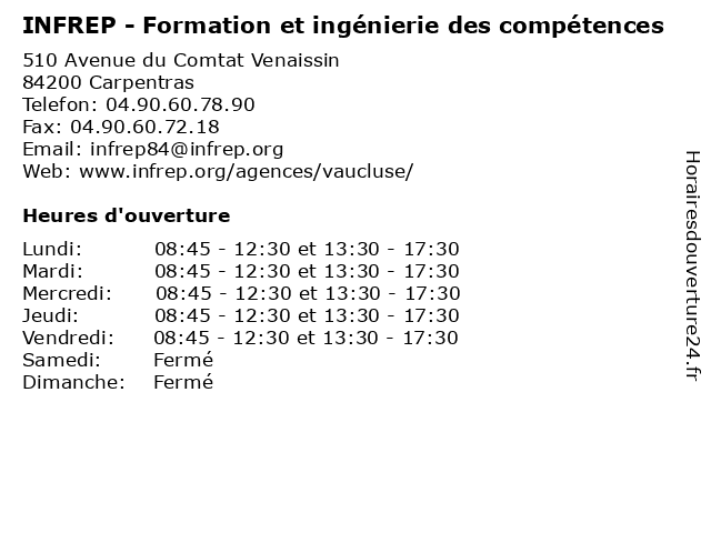 | Mardi | 08:45-12:30 et 13:30-17:30 |