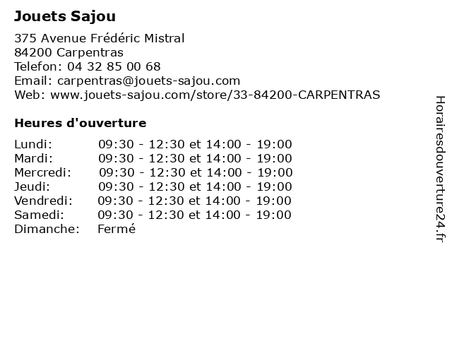 | Mercredi | 09:30-12:30 et 14:00-19:00 |