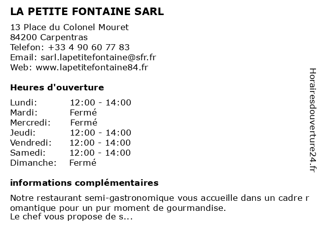 Termes de recherche pour LA PETITE FONTAINE SARL:la, fontaine, sarl, petite |