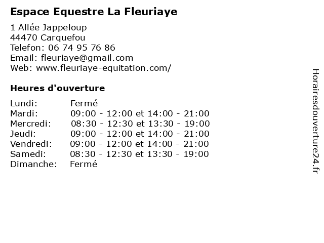 | Lundi | Fermé |