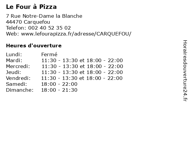 | Mardi | 11:30-13:30 et 18:00-22:00 |