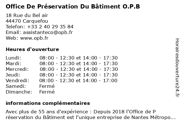 | Lundi | 08:00-12:30 et 14:00-17:30 |