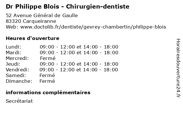Lundi | 09:00-12:00 et 14:00-18:00 |