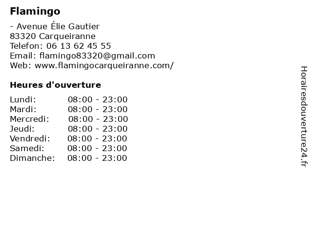| Samedi | 08:00-23:00 |