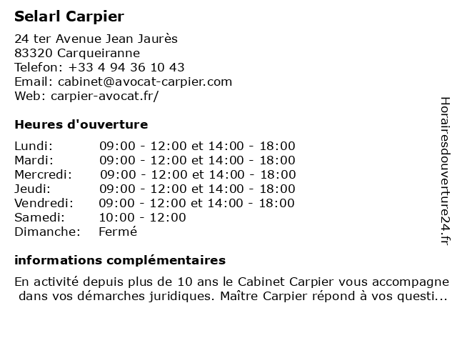 Lundi | 09:00-12:00 et 14:00-18:00 |