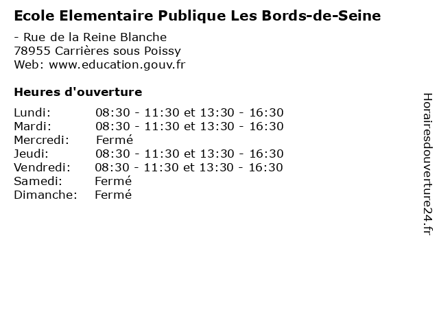 | Mardi | 08:30-11:30 et 13:30-16:30 |