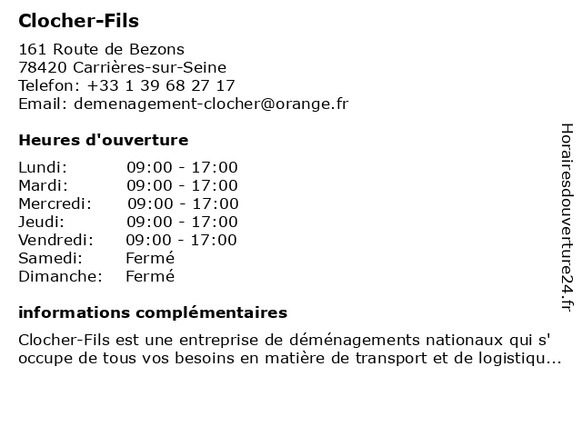 Horaires d'ouverture |