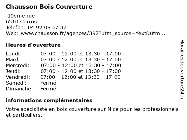 2 Ciffréo Bona - Centre Usinage Bois (Distance: 0,18 km) - 10ème Rue, 1ère Avenue, 06510 Carros bois, bona, bricolage, carrelage, centre, ciffréo, commercialisation, cuisines, gros, menuiserie, oeuvre, peinture, produits, usinage, vente 3 Ciffréo Bona - Centre Usinage Bois (Distance: 1,82 km) - 3ème Rue, 06510 Carros bois, bona, bricolage, carrelage, centre, ciffréo, commercialisation, cuisines, gros, menuiserie, oeuvre, peinture, produits, usinage, vente 4 Chausson Matériaux (Distance: 2,34 km) - Zone Industrielle 1ere Avenue, 06510 Carros bricolage, chausson, materiaux, matériaux, menuiserie 5 Chausson Matériaux (Distance: 8,82 km) 78 Avenue Cyrille Besset, 06100 Nice chausson, isolation, matériaux, platrerie 6 Chausson Matériaux (Distance: 10,82 km) 1349 Avenue Pierre et Marie Curie, 06700 Saint Laurant Du Var chausson, isolation, matériaux, platrerie |