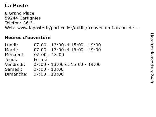 | Mardi | 07:00-13:00 et 15:00-19:00 |