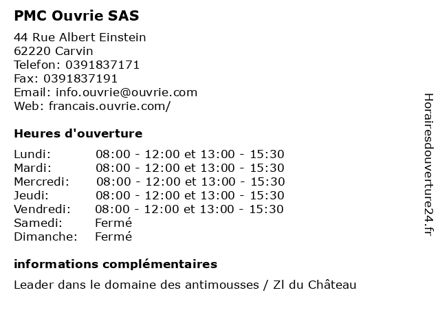 | Vendredi | 08:00-12:00 et 13:00-15:30 |