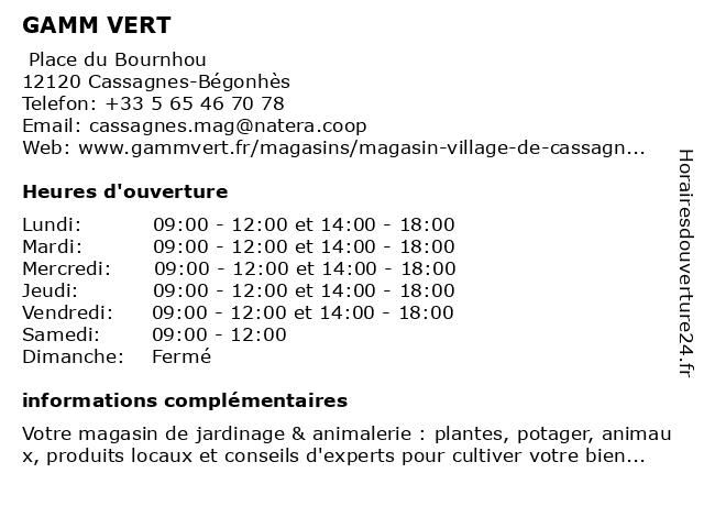 2 GAMM VERT (Distance: 13,77 km) Rue du Puech, 12160 Baraqueville animalerie, animaux, gamm, jardinage, plantes, potager, produits locaux, vert 4 GAMM VERT (Distance: 13,90 km) 17 Zone Artisanale de l'Issart, 12800 Naucelle animalerie, animaux, gamm, jardinage, plantes, potager, produits locaux, vert 6 GAMM VERT (Distance: 15,74 km) 212 Avenue de Rodez, 12450 Luc-la-Primaube animalerie, animaux, gamm, jardinage, plantes, potager, produits locaux, vert |