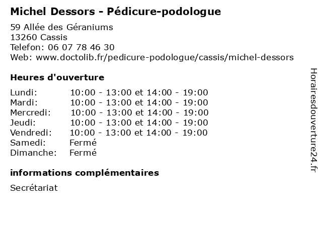 | Lundi | 10:00-13:00 et 14:00-19:00 |
