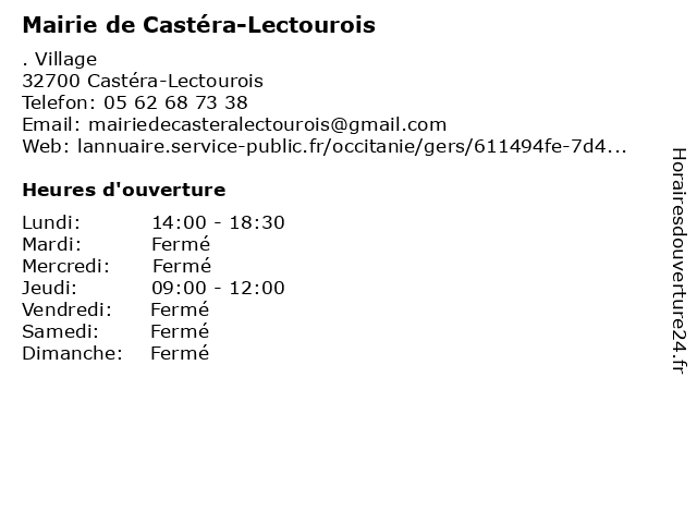Termes de recherche pour Mairie de Castéra-Lectourois:de, administration, mairie, assoc public, castéra, lectourois |