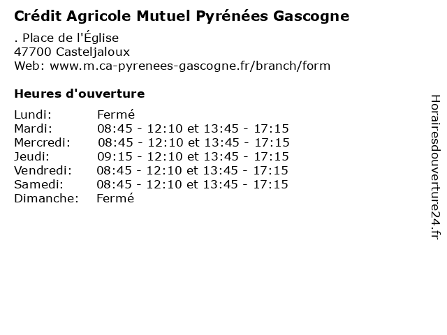 1 Crédit Agricole Mutuel Pyrénées Gascogne (Distance: 8,04 km) . Le Clavier, 47250 Bouglon agricole, assurances, bancaire, banque, crédit, gascogne, mutuel, pyrénées, services 2 Crédit Agricole Mutuel Pyrénées Gascogne (Distance: 13,51 km) 17 Place du Marché, 33640 Grignols agricole, assurances, bancaire, banque, crédit, gascogne, mutuel, pyrénées, services 3 Crédit Agricole Mutuel Pyrénées Gascogne (Distance: 14,77 km) . Rue du Bois, 47430 Le Mas-d'Agenais agricole, assurances, bancaire, banque, crédit, gascogne, mutuel, pyrénées, services 4 Crédit Agricole Mutuel Pyrénées Gascogne (Distance: 15,19 km) . Boulevard du Midi, 47160 Damazan agricole, assurances, bancaire, banque, crédit, gascogne, mutuel, pyrénées, services 5 Crédit Agricole Mutuel Pyrénées Gascogne (Distance: 19,23 km) . Place Jean-Jaurès, 47400 Tonneins agricole, assurances, bancaire, banque, crédit, gascogne, mutuel, pyrénées, services 6 Office de tourisme des Coteaux et Landes de Gascogne (Distance: 0,11 km) 20 place du Roy, 47700 Casteljaloux bureaux, casteljaloux, coteaux, de, des, et, gascogne, landes, office, offices, services, tourisme |