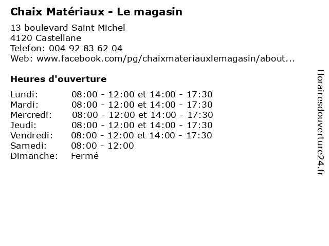 | Mardi | 08:00-12:00 et 14:00-17:30 |