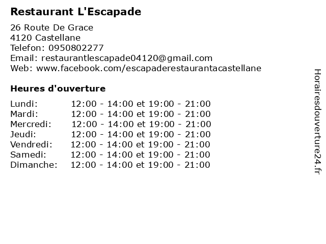 Termes de recherche pour Restaurant L'Escapade:restaurant, escapade, restaurants, formule, aperitif, l'escapade |