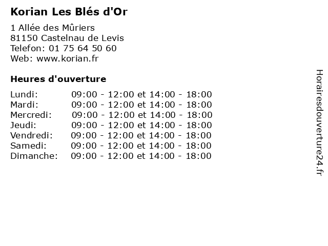 | Lundi | 09:00-12:00 et 14:00-18:00 |
