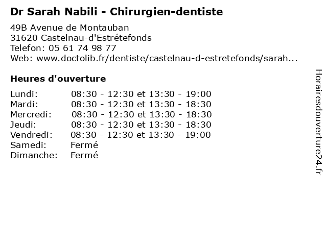 | Lundi | 08:30-12:30 et 13:30-19:00 |