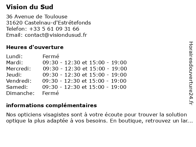 | Mardi | 09:30-12:30 et 15:00-19:00 |