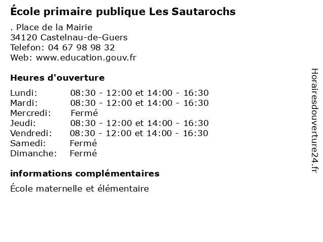 | Mardi | 08:30-12:00 et 14:00-16:30 |