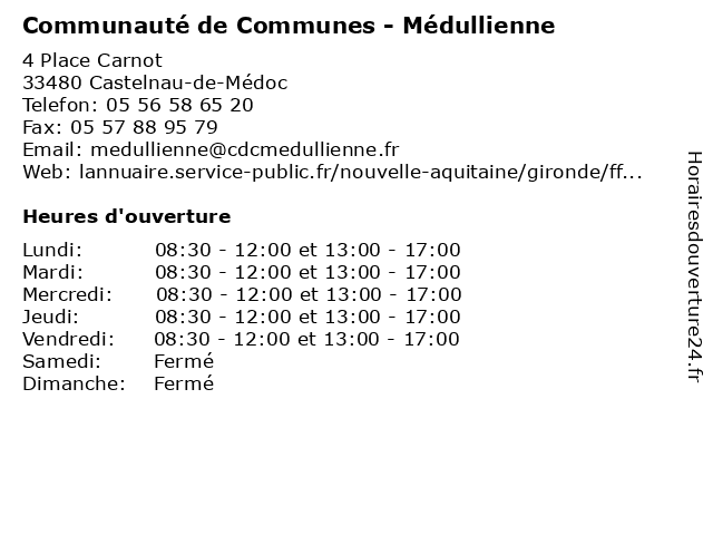 Termes de recherche pour Communauté de Communes - Médullienne:de, administration, communes, communauté, services publics, médullienne |