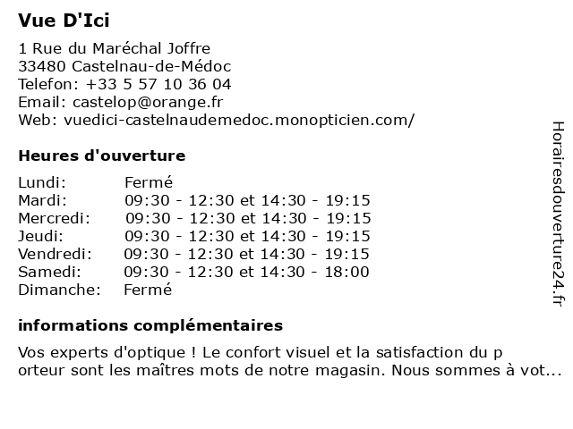 | Mardi | 09:30-12:30 et 14:30-19:15 |