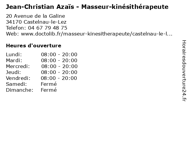 Termes de recherche pour Jean-Christian Azaïs - Masseur-kinésithérapeute:jean, christian, docteur, kiné, masseur, kinésithérapeute, azais |
