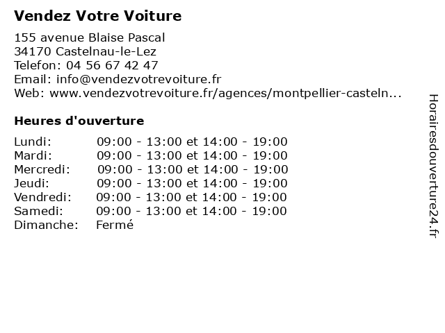 | Lundi | 09:00-13:00 et 14:00-19:00 |
