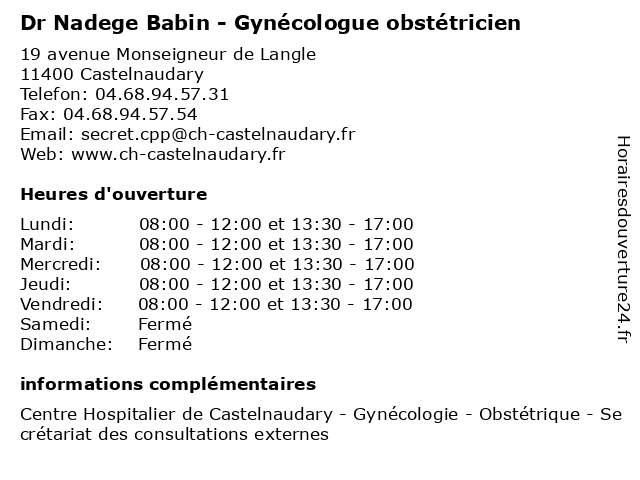 1 Dr Mohamad Hajkhalil - Gynécologue obstétricien (Distance: 0,00 km) 19 avenue Monseigneur de Langle, 11400 Castelnaudary bebe, dr, gynecologie, gynécologie, gynécologue, hajkhalil, maternite, mohamad, obstetrique, obstétricien, obstétrique 2 Dr Bertrand Grosset - Gynécologue obstétricien (Distance: 0,00 km) 19 avenue Monseigneur de Langle, 11400 Castelnaudary bebe, bertrand, dr, grosset, gynecologie, gynécologie, gynécologue, maternite, obstetrique, obstétricien, obstétrique 3 Dr Marie Hélène Gazel - Gynécologue Obstétricien (Distance: 0,00 km) 19 avenue Monseigneur de Langle, 11400 Castelnaudary bebe, dr, gazel, gynecologie, gynécologue, hélène, marie, maternite, obstetrique, obstétricien 4 Dr Brigitte Mercadier - Gynécologue médical (Distance: 0,84 km) 4 Cours de la République, 11400 Castelnaudary bebe, brigitte, cabinet, de, dr, gynecologie, gynécologie, gynécologue, maternite, mercadier, médical, obstetrique 5 Dr Lydia Pezé - Gynécologue médical (Distance: 0,85 km) 10 Rue Théophile Barrau, 11400 Castelnaudary bebe, cabinet, de, dr, gynecologie, gynécologie, gynécologue, lydia, maternite, médical, obstetrique, pezé 6 Dr Thierry Babin - Endocrinologue (Distance: 36,29 km) - Chemin de la Madeleine, 11000 Carcassonne babin, consultation, docteur, dr, endocrinologue, med, médecin, médecine, thierry, traitement |