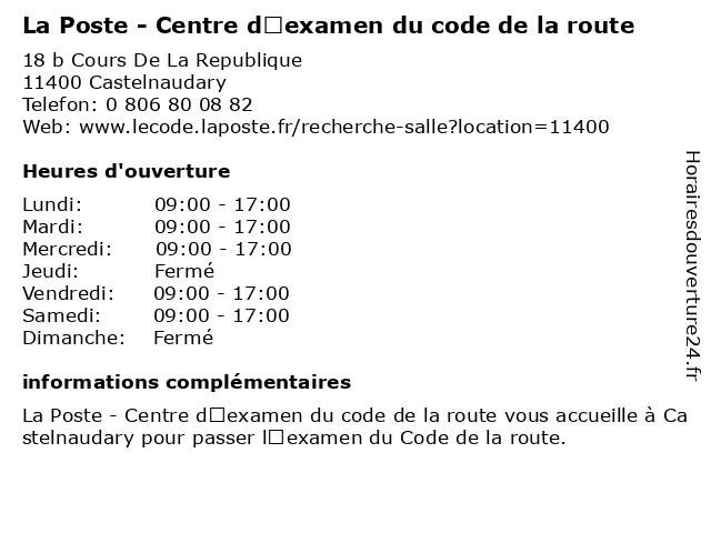 Termes de recherche pour La Poste - Centre d’examen du code de la route:poste, la, du, de, route, centre, code, d’examen, centre d'évaluation scolaire, école technique |
