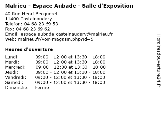 | Mardi | 09:00-12:00 et 13:30-18:00 |