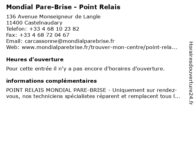 | Appeler Mondial Pare-Brise - Point Relais | |